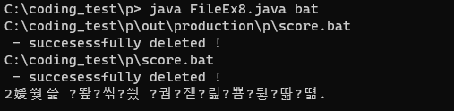 - 확장자가 .bat인 두 개의 파일이 정상적으로 삭제된다.