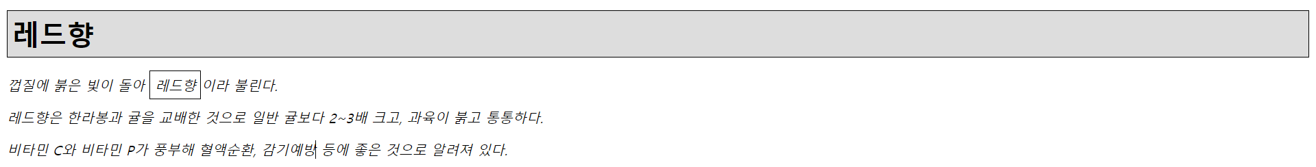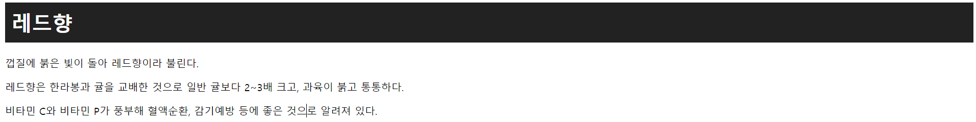 - <span>태그를 사용해서 '레드향' 요소에 적용했다.