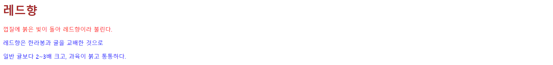 <h1 style="color:green">레드향</h1>