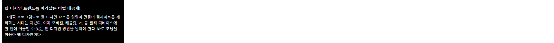- container요소의 배경색을 검정으로 글자색은 흰색으로 변경한다.