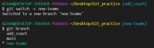 Note) 각 팀에 코치를 추가하는 브랜치를 만든다.