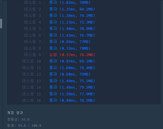 - 이렇게 하면 테스트 케이스 하나를 통과하지 못한다.