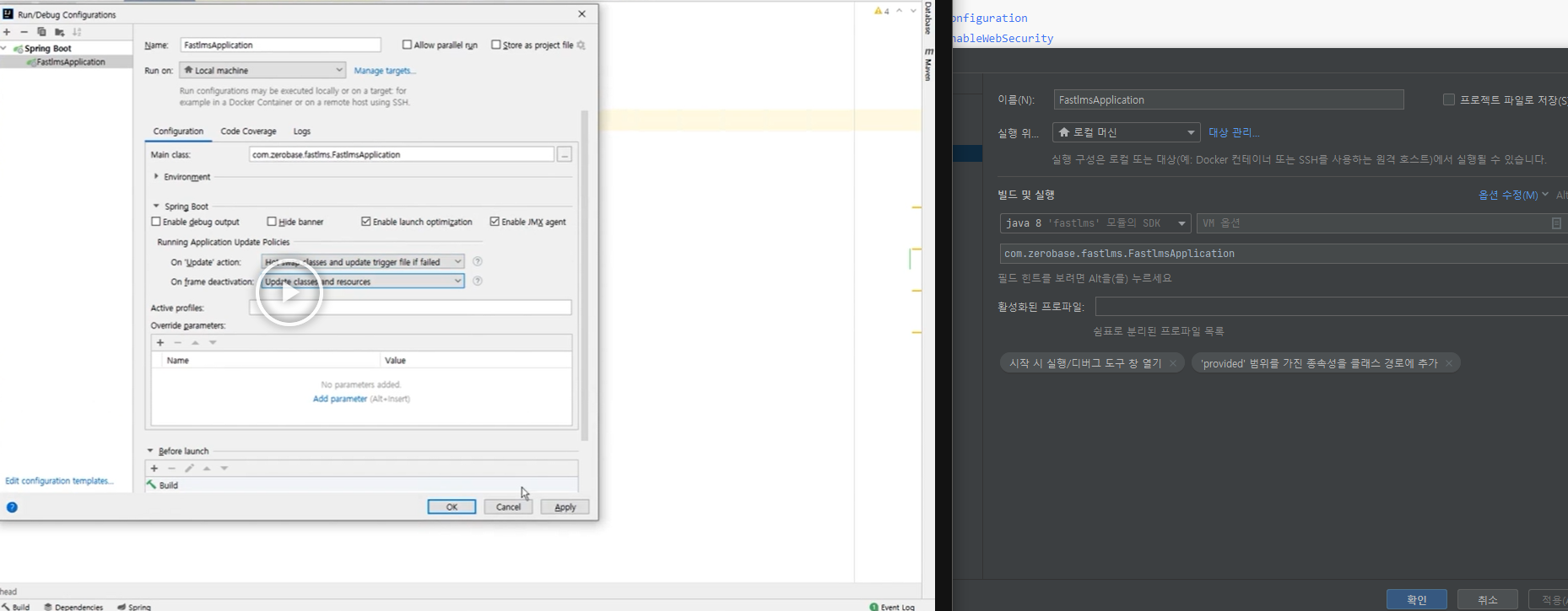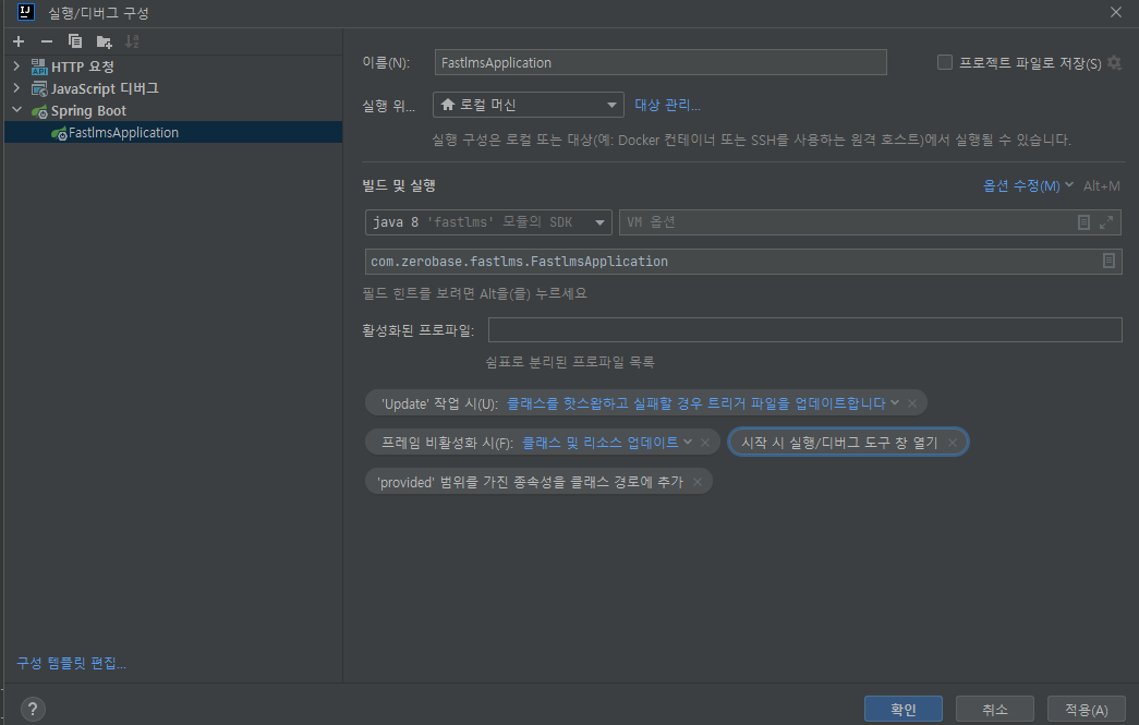 - 실행 구성 설정
