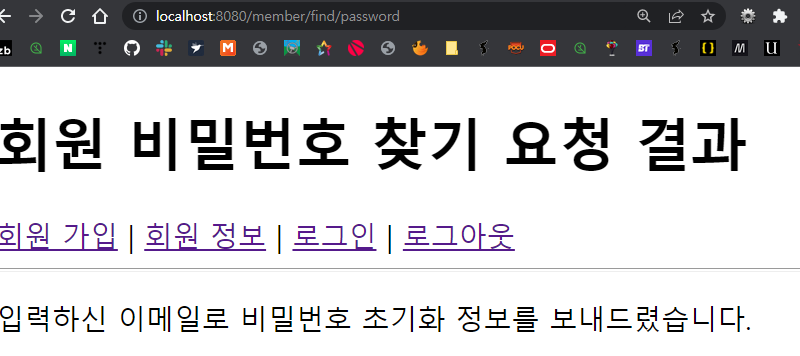 - http://localhost:8080/member/find_password 입력하면 http://localhost:8080/member/login페이지로 이동한다.