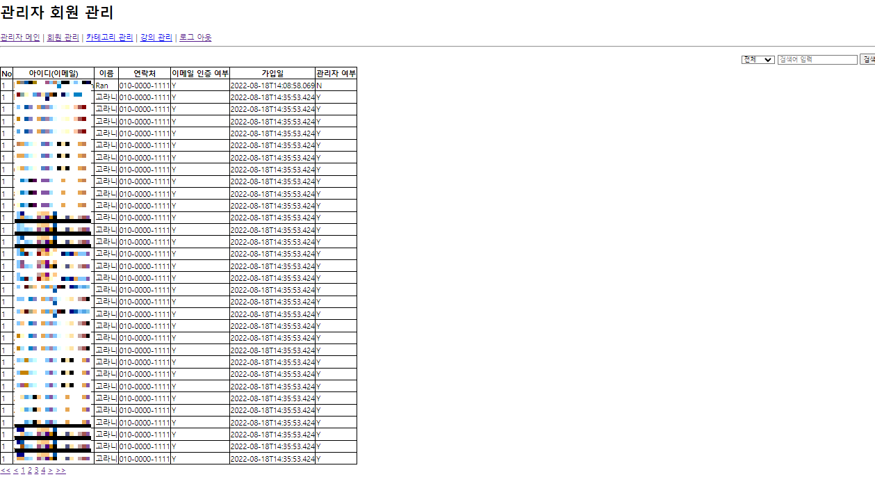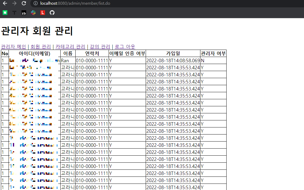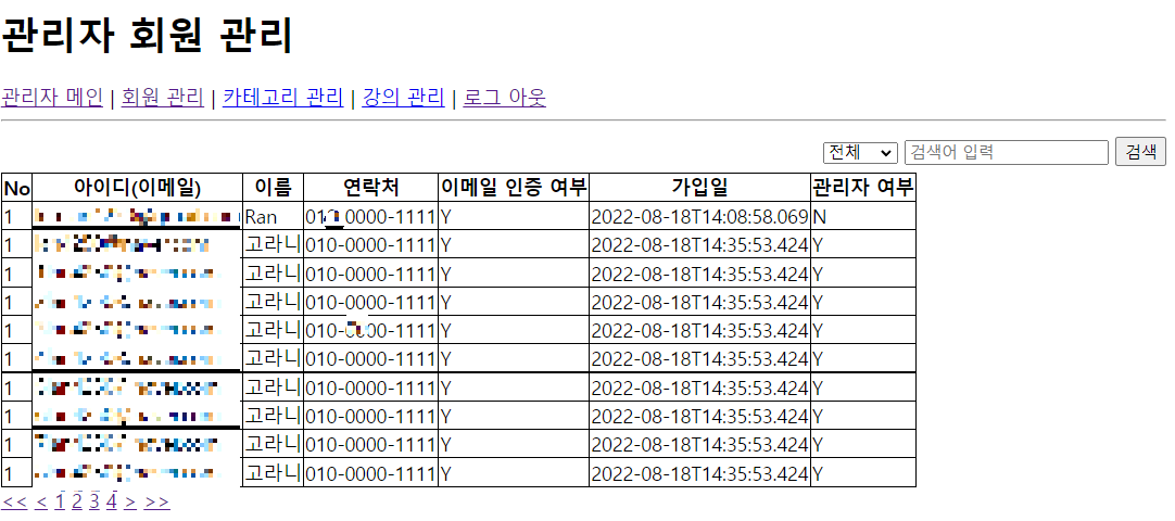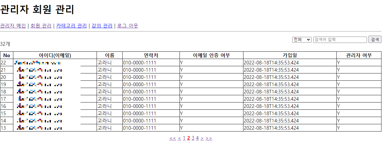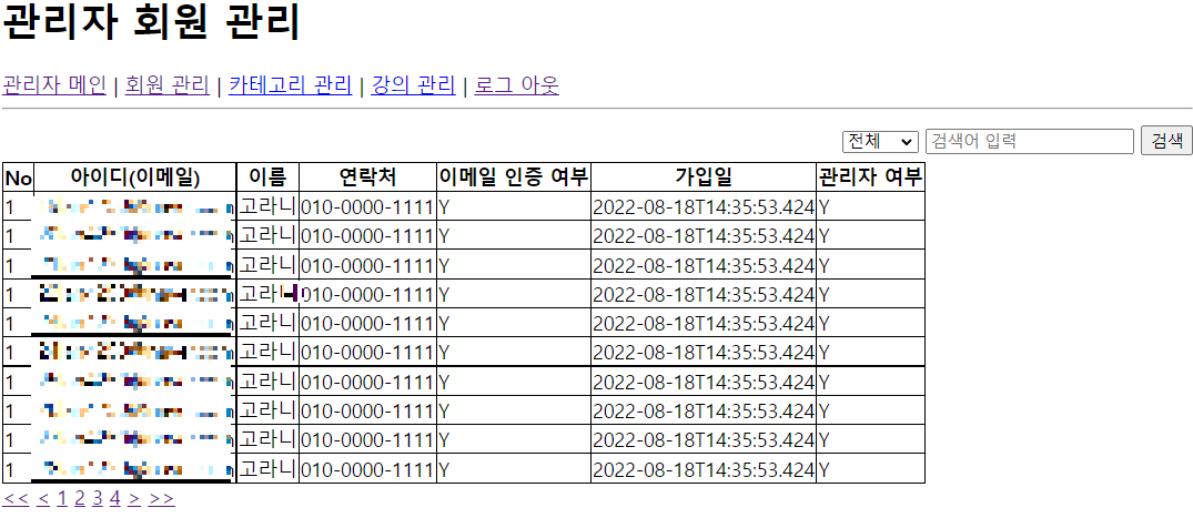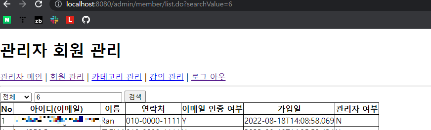 Ex) 관리자 페이지에서 회원 목록 구현하기