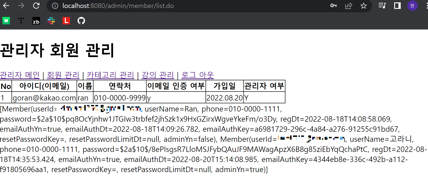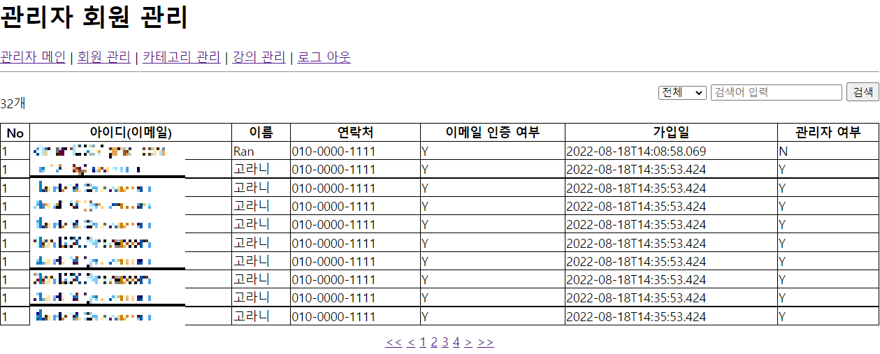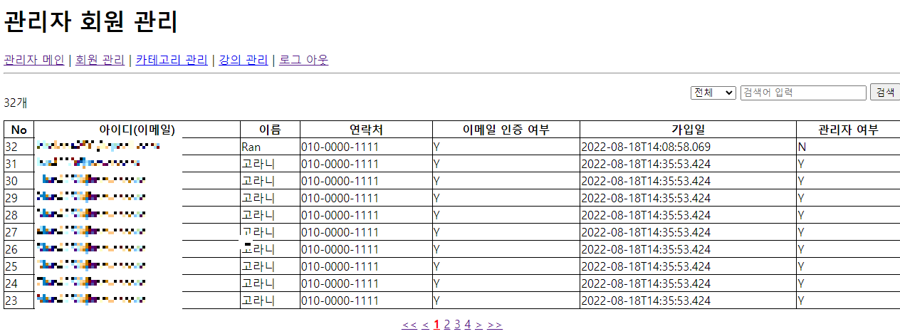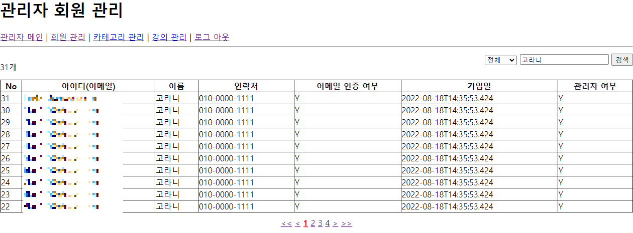 Ex) 관리자 페이지에서 회원 목록 구현하기