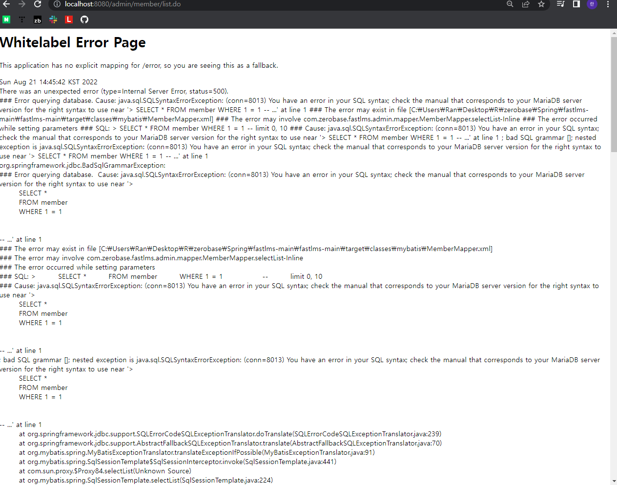 - 원인: SQL 문법 오류 - xm 파일에 <select> 태그에 '>'를 하나 더 붙여서 틀렸다.