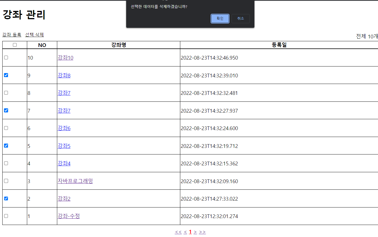 if(!confirm('선택한 데이터를 삭제하겠습니까?')){ // 체크 박스를 누르고나서 선택 삭제를 누른 경우에만 실행된다.