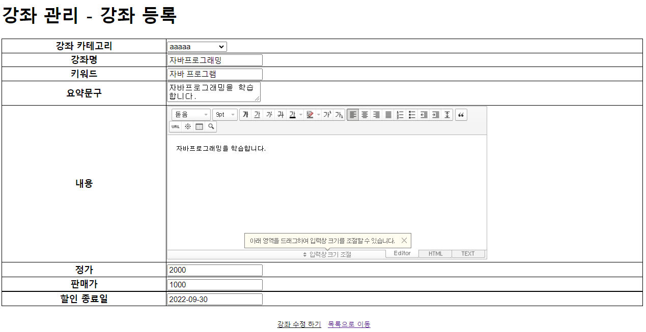 13.6 강좌 수정 화면 스마트에디터(SmartEditor) 기능 적용