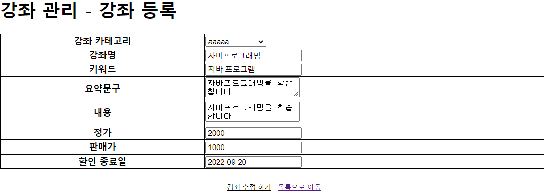 <h1>강좌 관리 - 강좌 등록</h1>