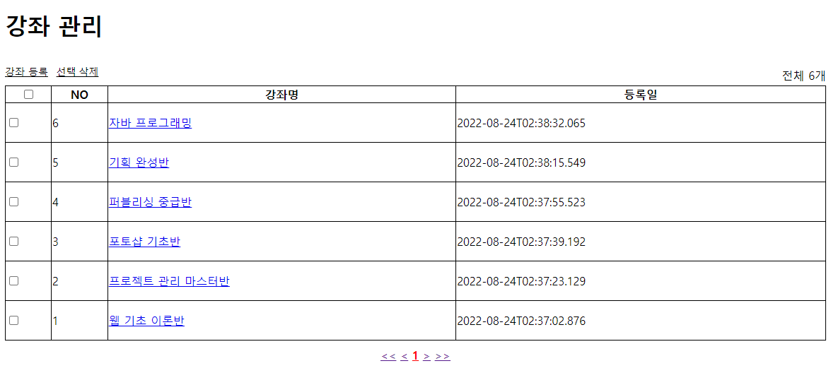Note) 실행 결과 - 강좌 목록 탭 누른 결과