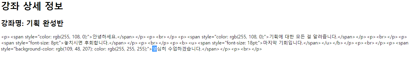 result.setMessage("강좌 정보가 존재하지 않습니다."); // 실패이유