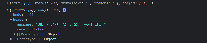 result.setMessage("이미 신청한 강좌 정보가 존재합니다.");