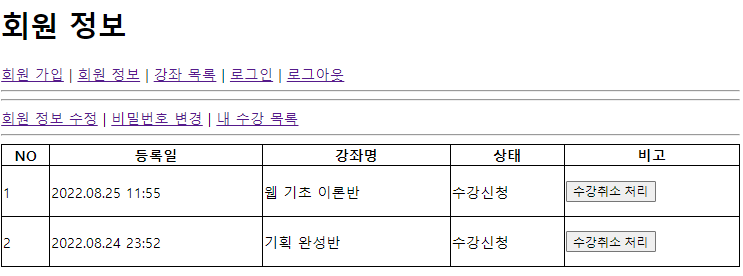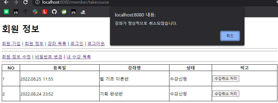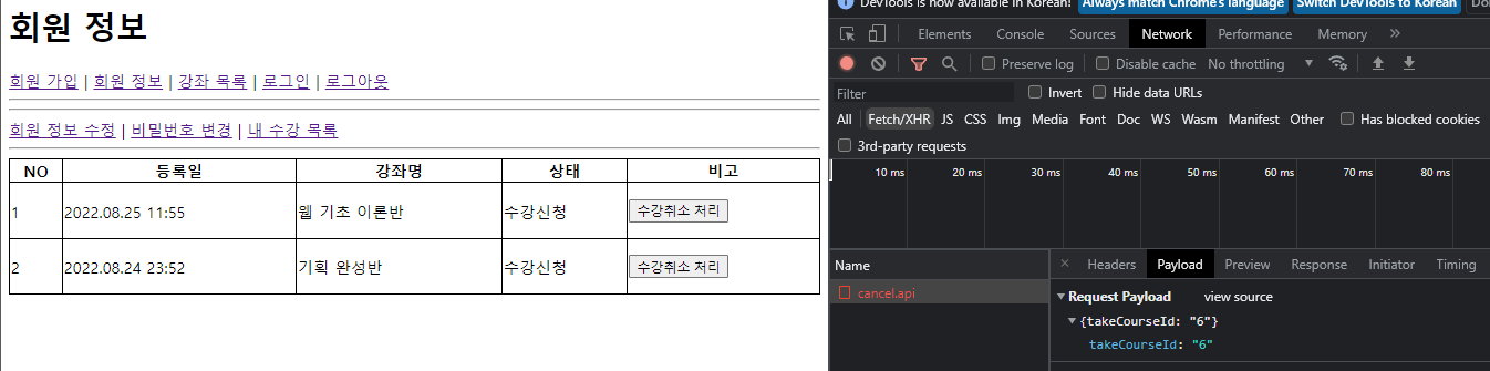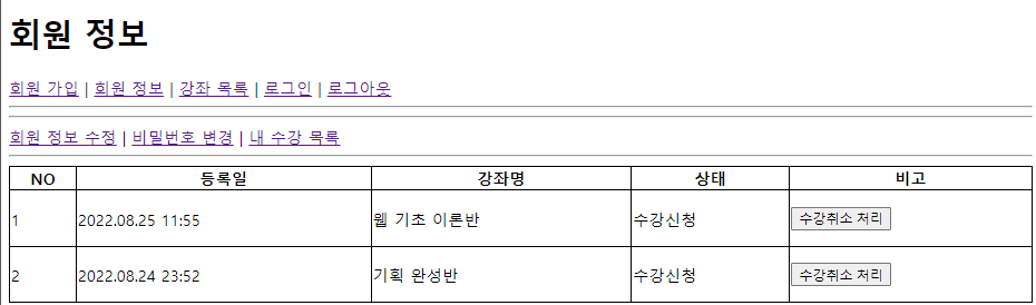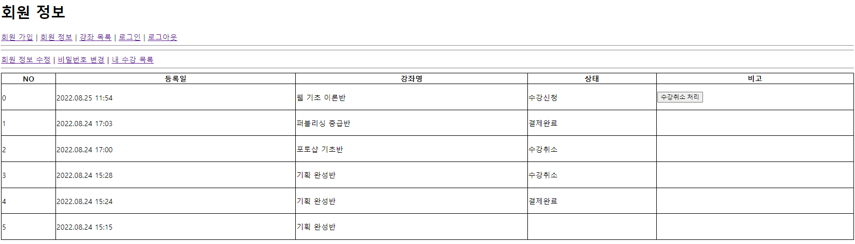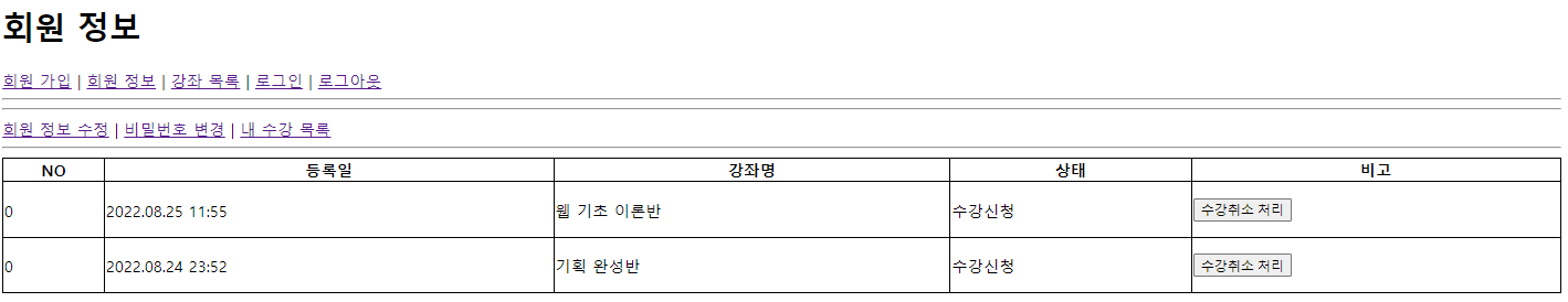 -> 수강 취소 후 화면