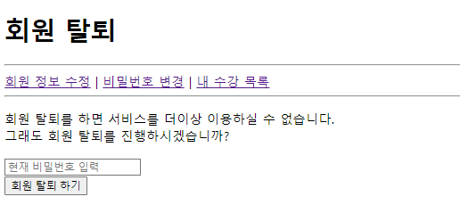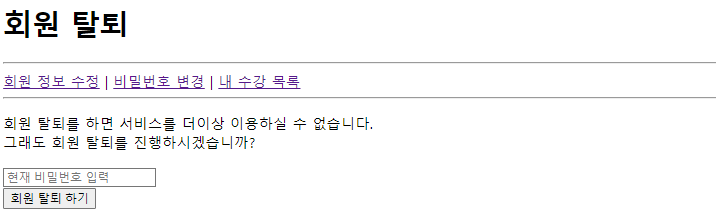 -> 비밀번호를 체크하고 탈퇴하도록 한다.
