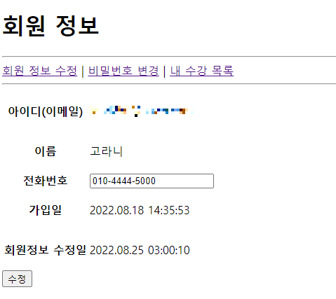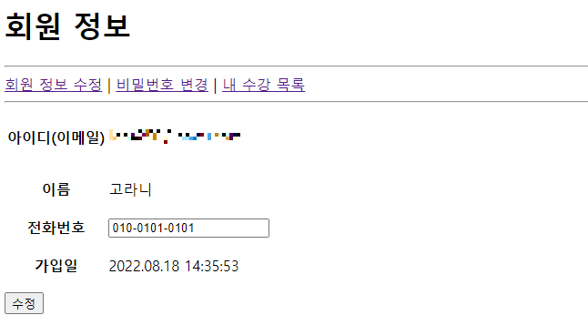 - 비밀번호 변경 / 회원 정보 수정 페이지 / 수강 정보 확인