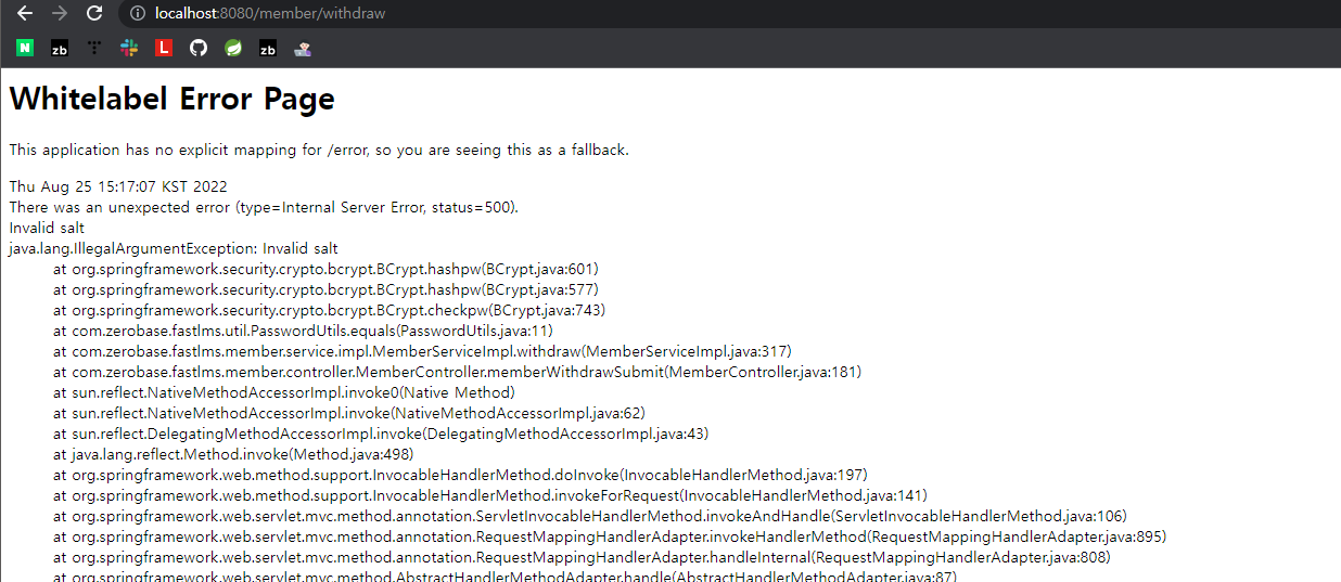 if(!PasswordUtils.equals(password, member.getPassword())) { // 탈퇴 불가능 - 자리 바꾸니까 정상 탈퇴