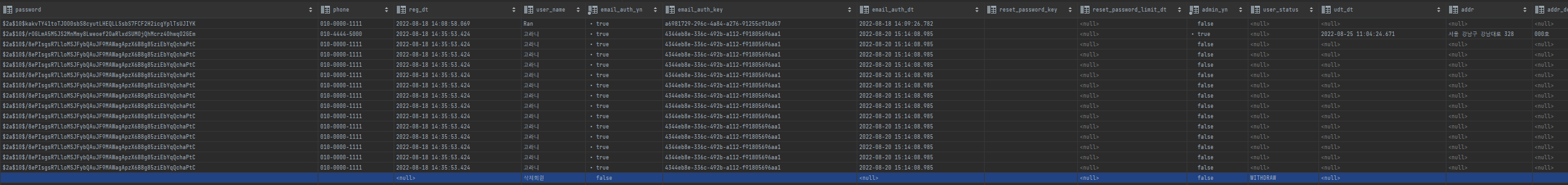 - 회원 테이블 정보를 삭제하는 게 아니라 reset