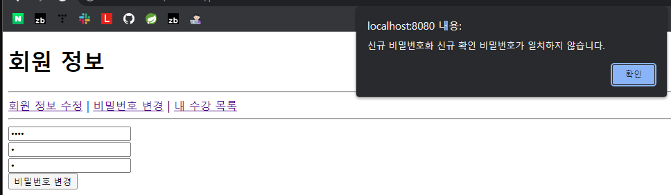 -> 현재 비밀번호가 일치하지 않을 때