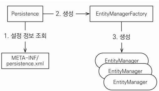 - 엔티티 매니저 팩토리를 만들면 데이터베이스 연결이 된다.
