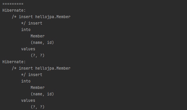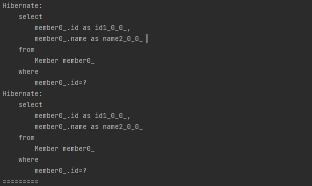 - 두 번 find를 하면 처음 find()할 때는 DB에서 가져오면서 영속성 컨텍스트에 데이터를 올려 놓는다.