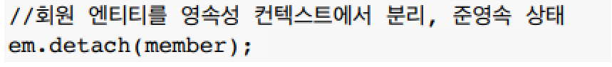 em.detach(member); // 영속성 컨텍스트에서 제거한다. - JPA에서 더 이상 관리하지 않는다.