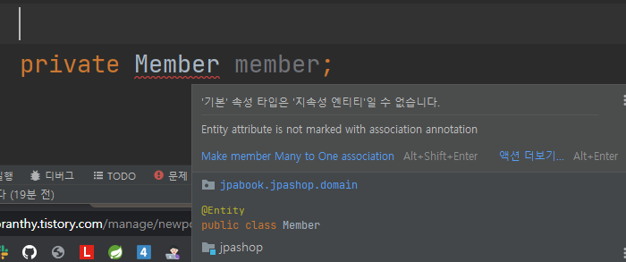 - 멤버 클래스에 테이블 이름을 지정해서 엔티티 추가