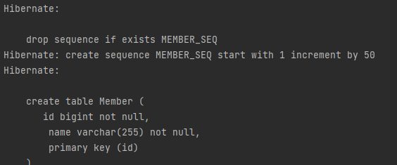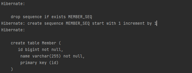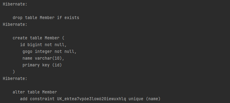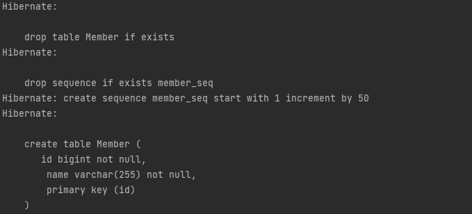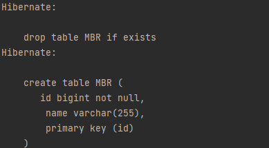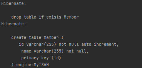 - value에 "create-drop"를 넣으면 애플리케이션 종료 시점에 테이블을 지운다.