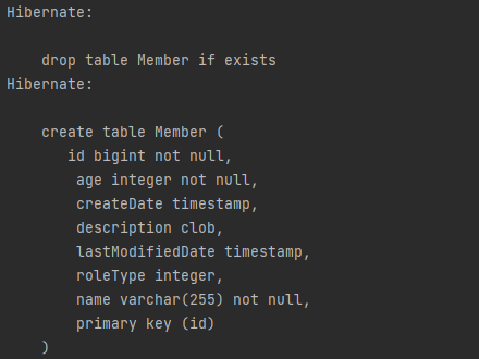 - DDL을 애플리케이션 실행 시점에 자동으로 생성한다. CREATE