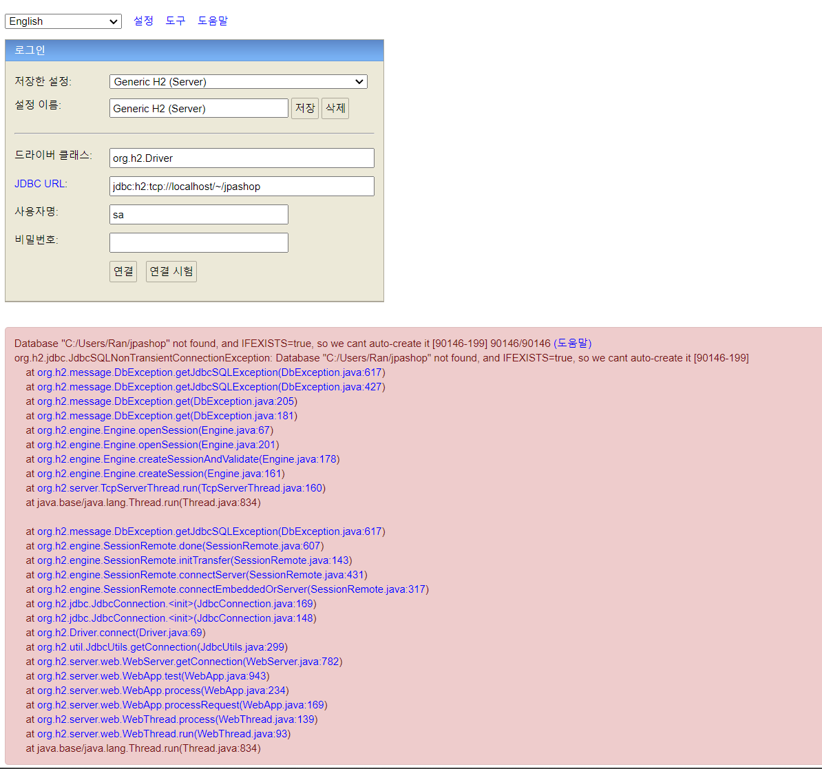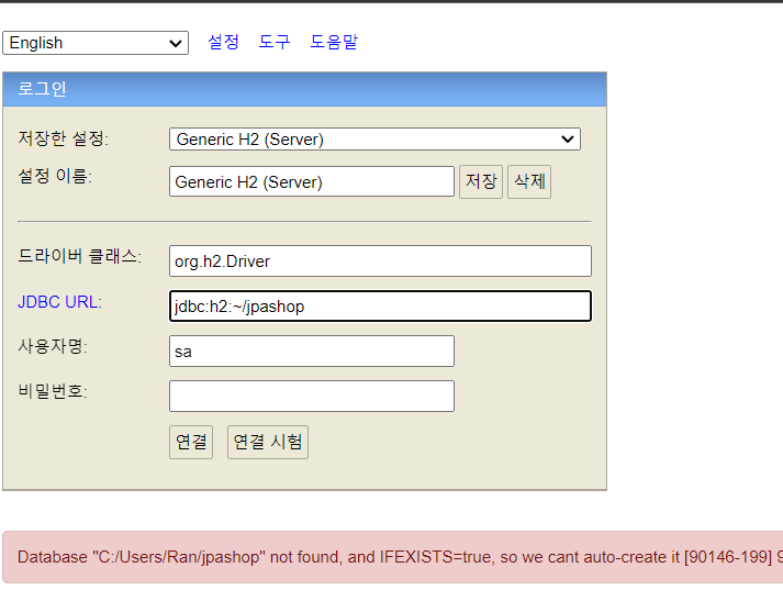 - 오류: 데이터베이스가 없다는 오류가 난다.