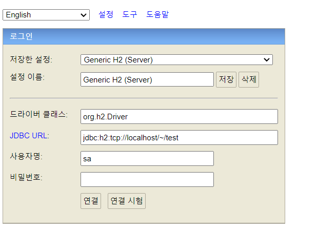 - 데이터베이스에 처음 연결할 때는 아래과 같이 :"tcp localhost"를 빼고 URL을 넣어야 데이터베이스가 생성된다.