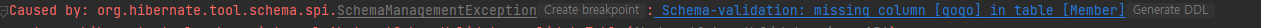 Note) 실행 결과 - 에러 나는 것이 정상이다. SchemaManagementException