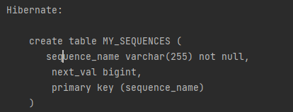 - sequenceName: 데이터베이스에 등록되어 있는 시퀀스이름 - hibernate_sequence