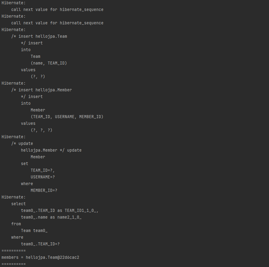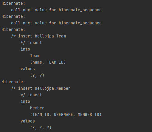 - persist() 순서대로 팀 쿼리 => 멤버 쿼리 나간다.