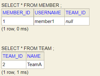 - 멤버 테이블에 TEAM_ID 값을 그대로 가지고 있다.