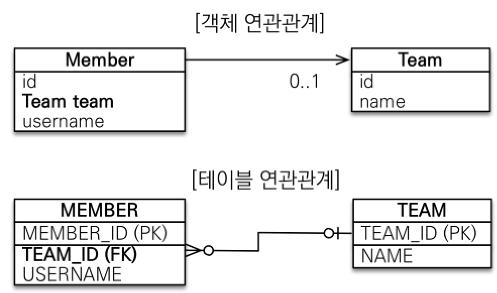 객체와 테이블 간에 연관 관계를 맺는 차이