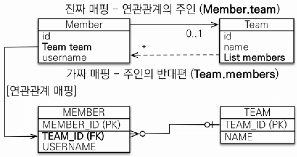 - 양방향 매핑은 반대 방향으로 조회(객체 그래프 탐색) 기능이 추가된 것 뿐이다.