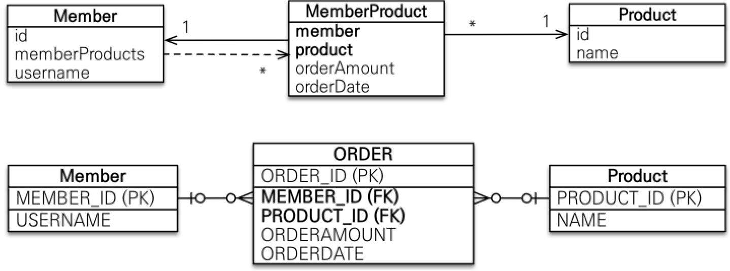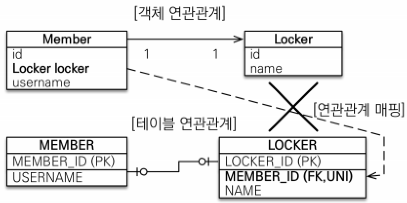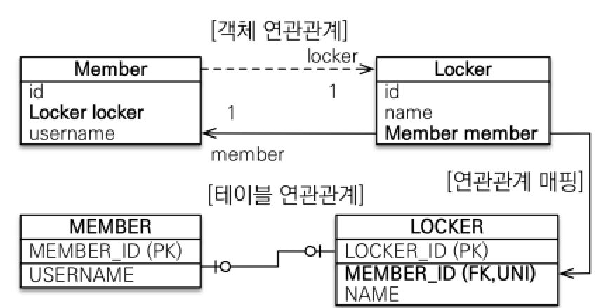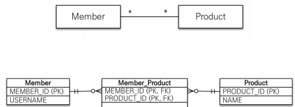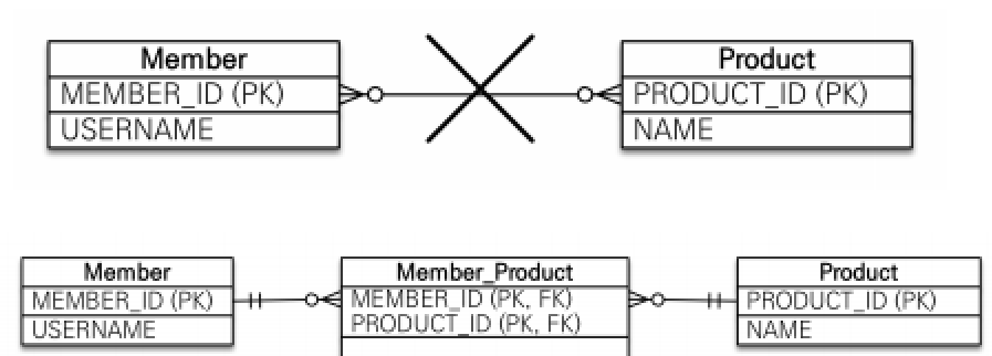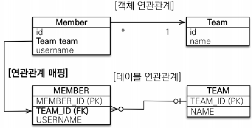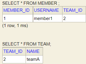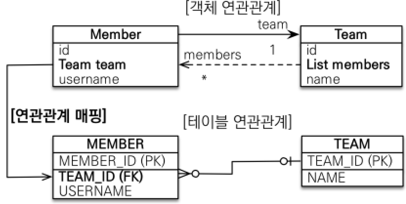 - 그런데, 데이터베이스에는 무조건 "다" 에 해당하는 Member가 테이블로 들어가야한다.