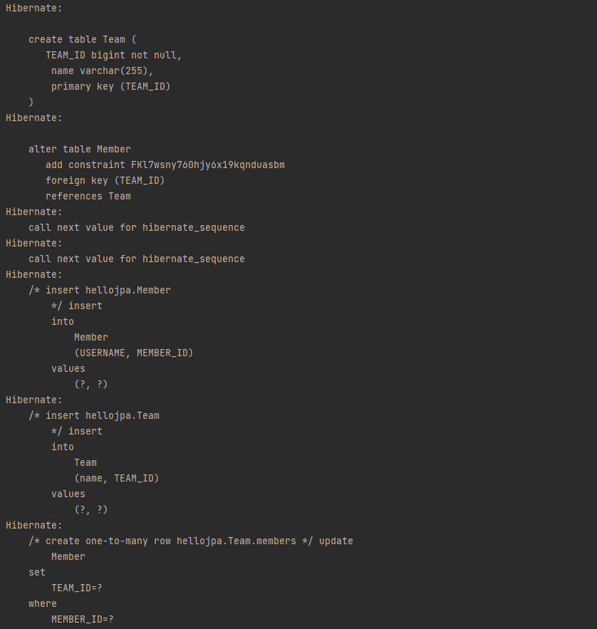 Ex) 위 예제의 Team 클래스에 @JoinColumn 애너테이션을 주석 처리하고 실행