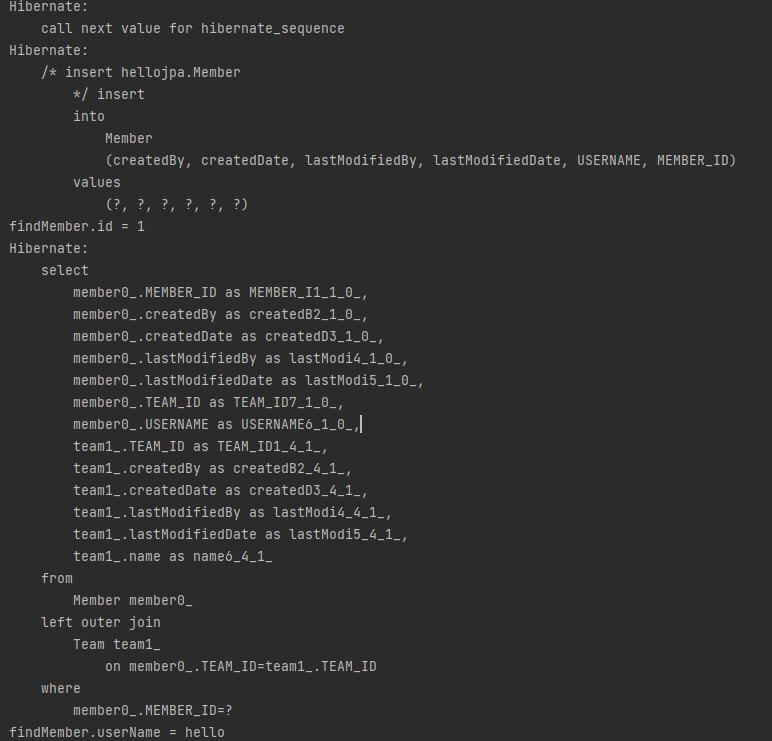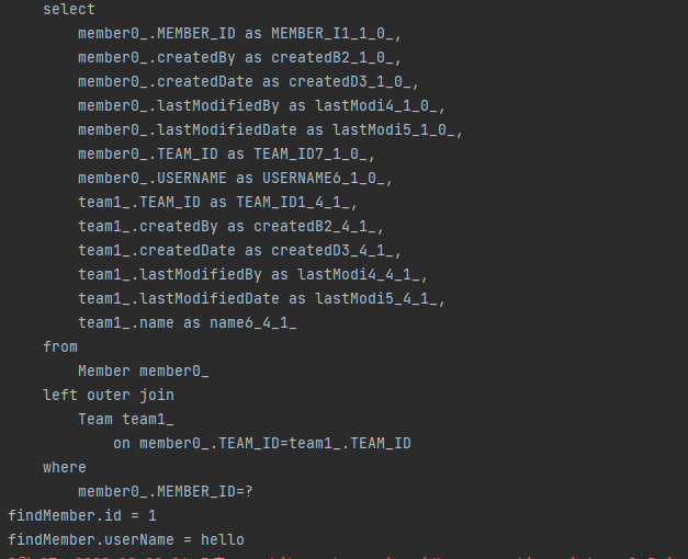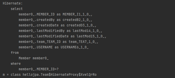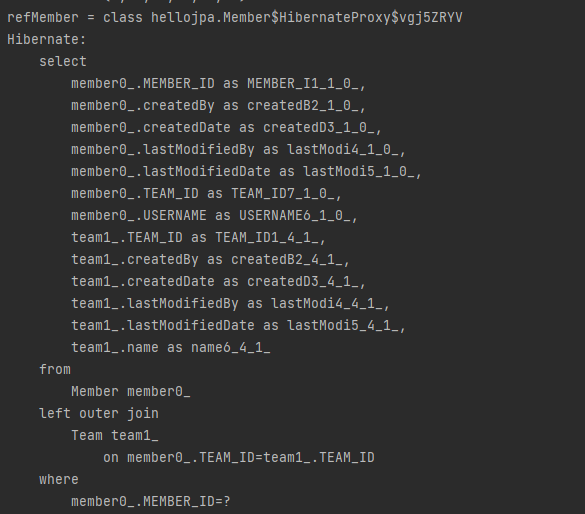 - 그런데, getReference()의 결과인 findMember를 실제 사용하는 시점이 되면 쿼리가 실행된다.