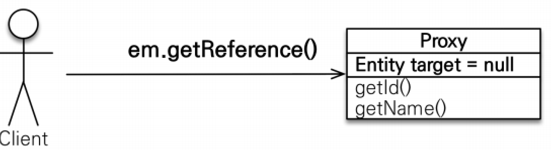 Ex) em.find(): 데이터베이스에서 실제 엔티티 객체를 조회