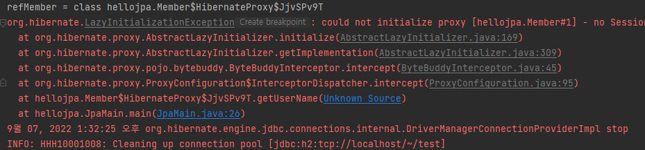 - 이는 하이버네이트가 강제로 만든 Member의 가짜 클래스인 프록시 클래스이다.