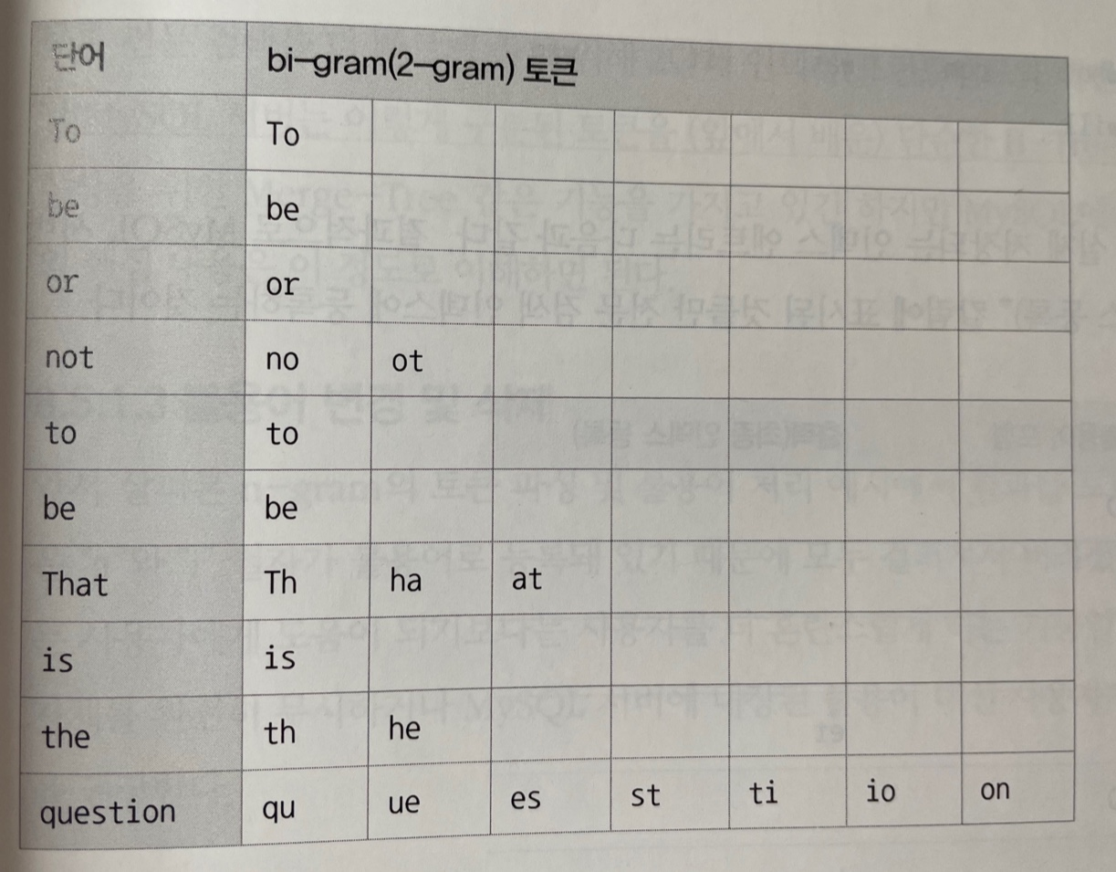 - Def) n-gram은 본문을 몇 글자씩 잘라서 인덱싱하는 방법이다.