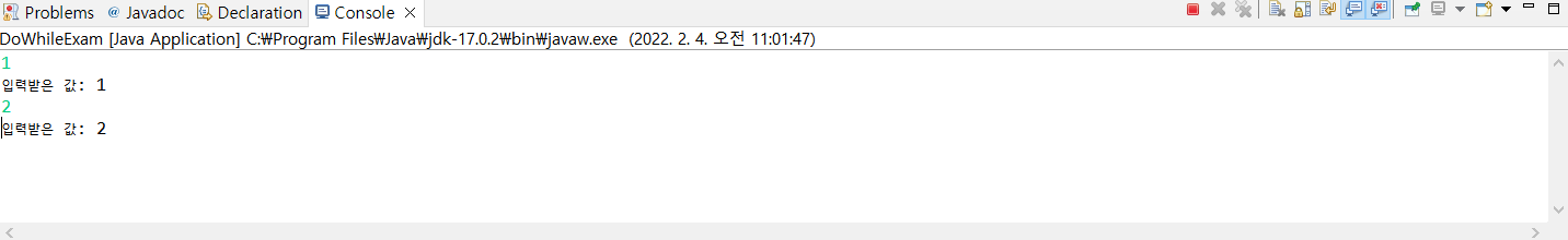 Note) 콘솔에 2를 입력했을 때