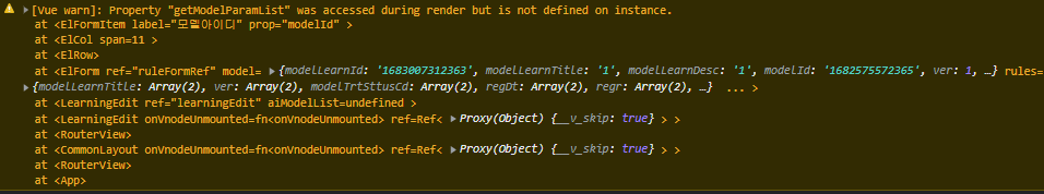 - 오류 [Vue warn]: Property "getModelParamList" was accessed during render but is not defined on instance.