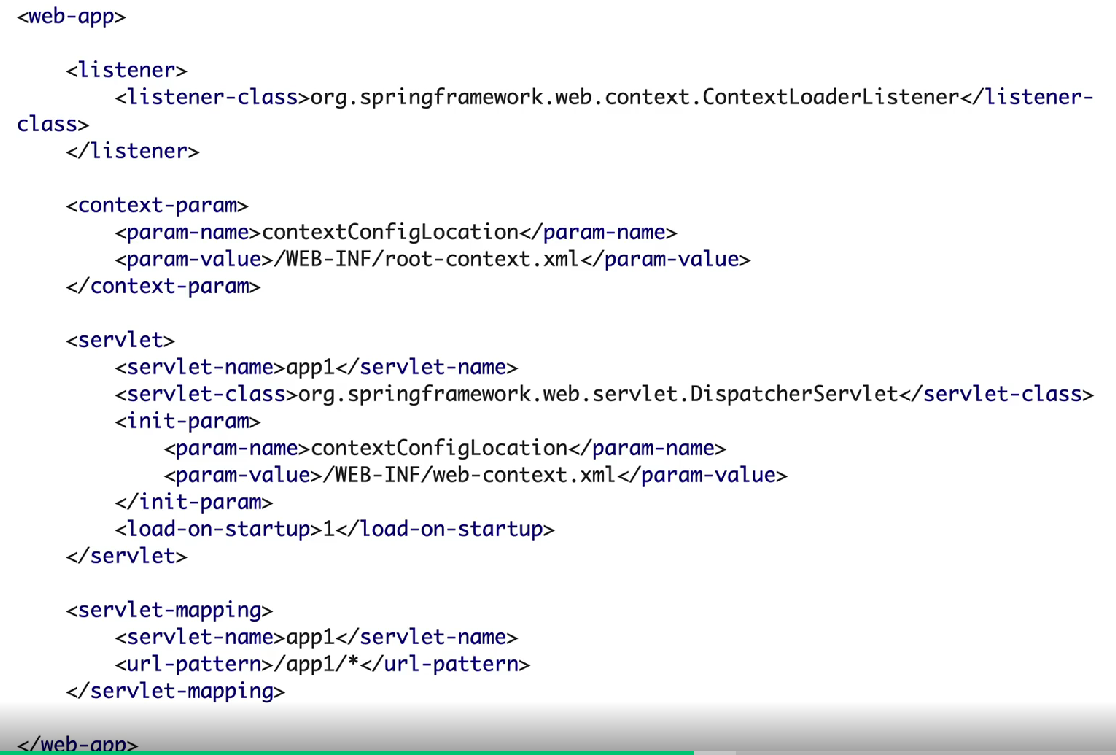 - 예전에는 web.xml이라는 파일을 등록해야만 서블릿 컨테이너가 뜨고 이를 통해 스프링 컨테이너가 호출됐다. dispatch servlet 설정, 서블릿 매핑은 어디에 하고.. 등등