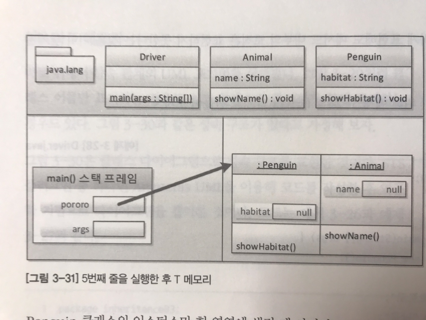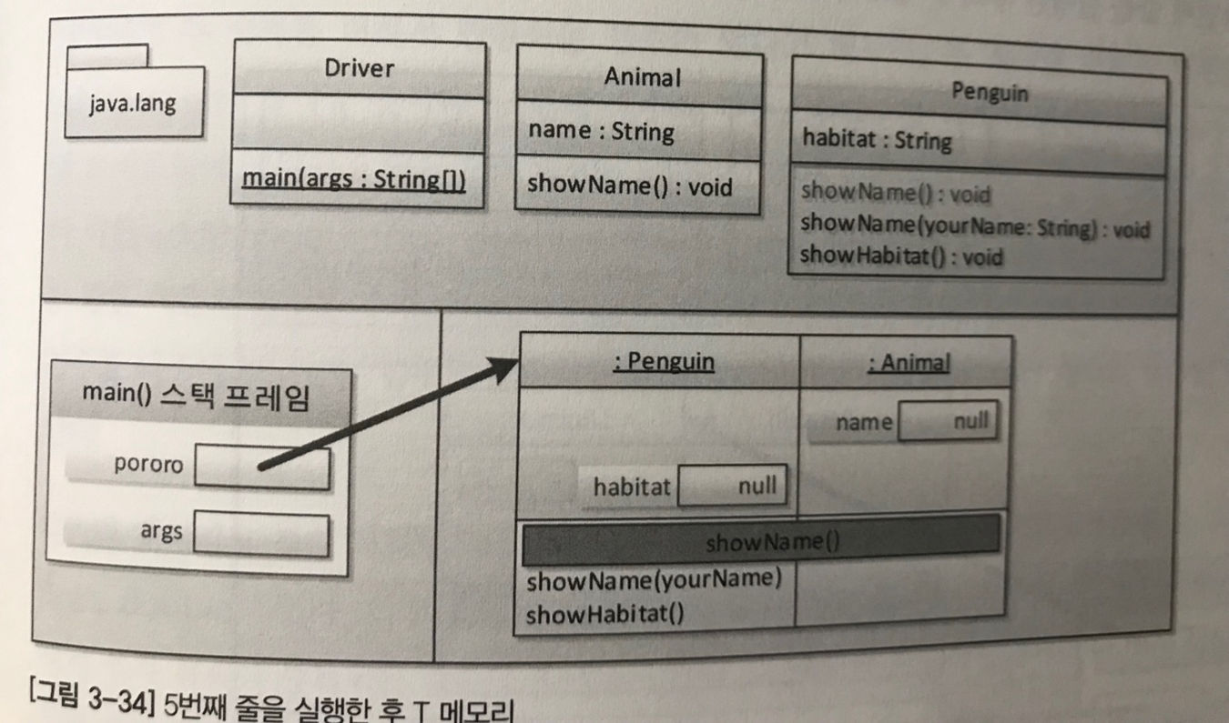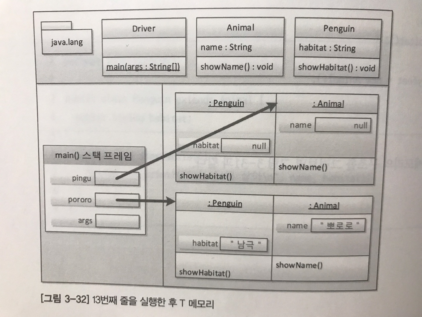 - Penguin 의 상위 클래스인 Animal 도 heap에 생성된다. (깊게 따져보면 Object 클래스의 인스턴스도 생성된다. )