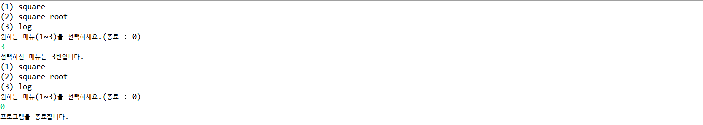 - 종료를 선택하는 경우, break문으로 반복을 빠져나가서 프로그램이 종료된다.