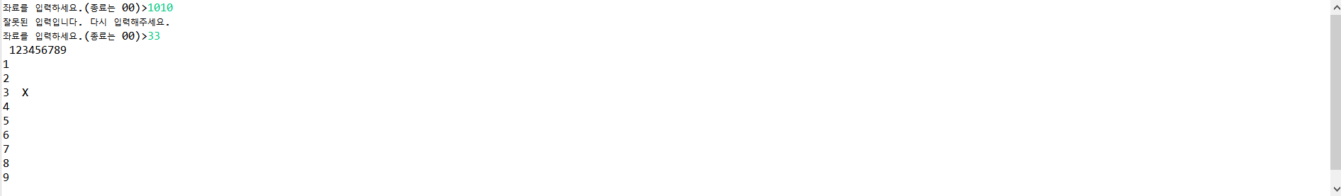 - 2차원 배열 char배열 board는입력한 좌표를 표시하기 위한 것이다.