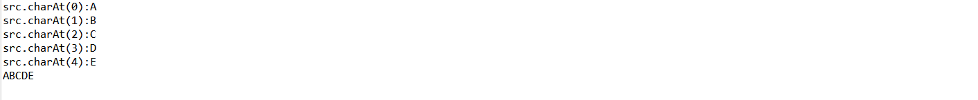 System.out.println("src.charAt(" + i+ "):"+ ch);